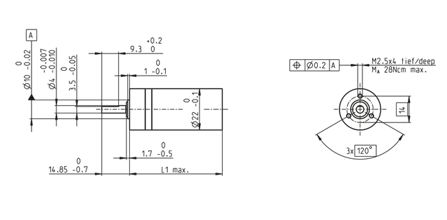 | Radial play | max. 0.12 mm, 10 mm from flange |