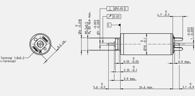 | Max. radial load | 0.4 N, 4 mm from flange |